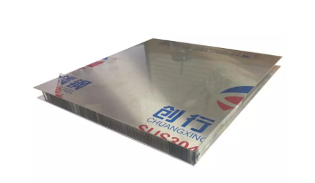 表板采用拉丝不锈钢板或者镜面不锈钢板,背板采用镀锌钢板,芯材采用铝蜂窝芯,经过专用粘合剂复合而成。它的外观很美观,使其在建筑应用以及室内装饰的各种表面加工方面得到广泛流行。